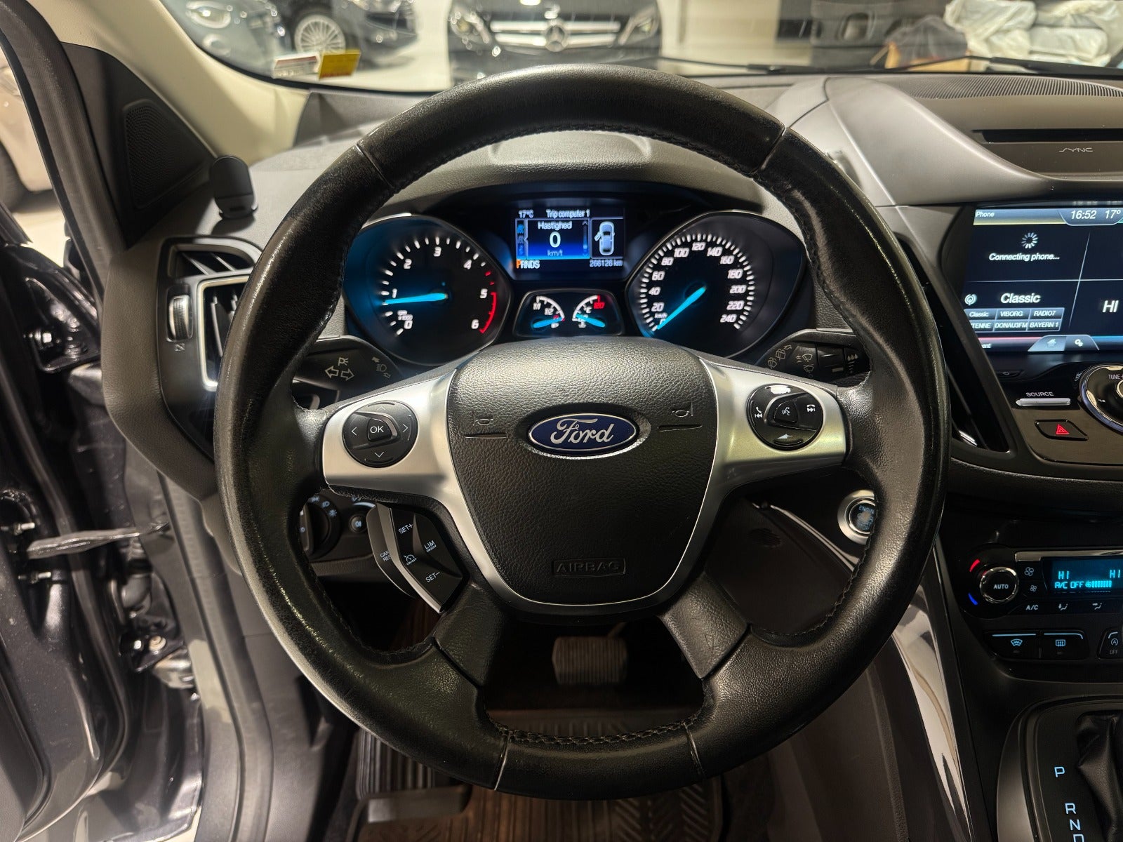 Pæn & velholdt Ford Kuga med fin servicehistorik.Kørecomputer, multifunktionsrat, bagagerumsdækken, højdejust. forsæder, 17" alufælge, læderrat, dellæderindtræk, splitbagsæde, justerbar lændestøtte, alufælge, el-sidespejle m/varme, aftageligt træk, tågelygter, el-klapbare sidespejle, mørktonede ruder i bag, tagræling, automatgear, aircondition, 2 zone klima, centrallås, nøglefri tænding, udv. temp. måler, 4x el-ruder, fuldaut. klima, fjernb. centrallås, fartpilot, varme i forrude, el-ruder, sædevarme, aut. nedbl. bakspejl, nøglefri adgang, el betjent bagklap, cd/radio, aux tilslutning, håndfrit til mobil, usb-a tilslutning, isofix, automatisk parkeringssystem, bakkamera, parkeringssensor (for), parkeringssensor (bag), dæktryksmåler, airbag, lygtevasker, automatisk lys, esp, tidligere undervognsbehandlet.